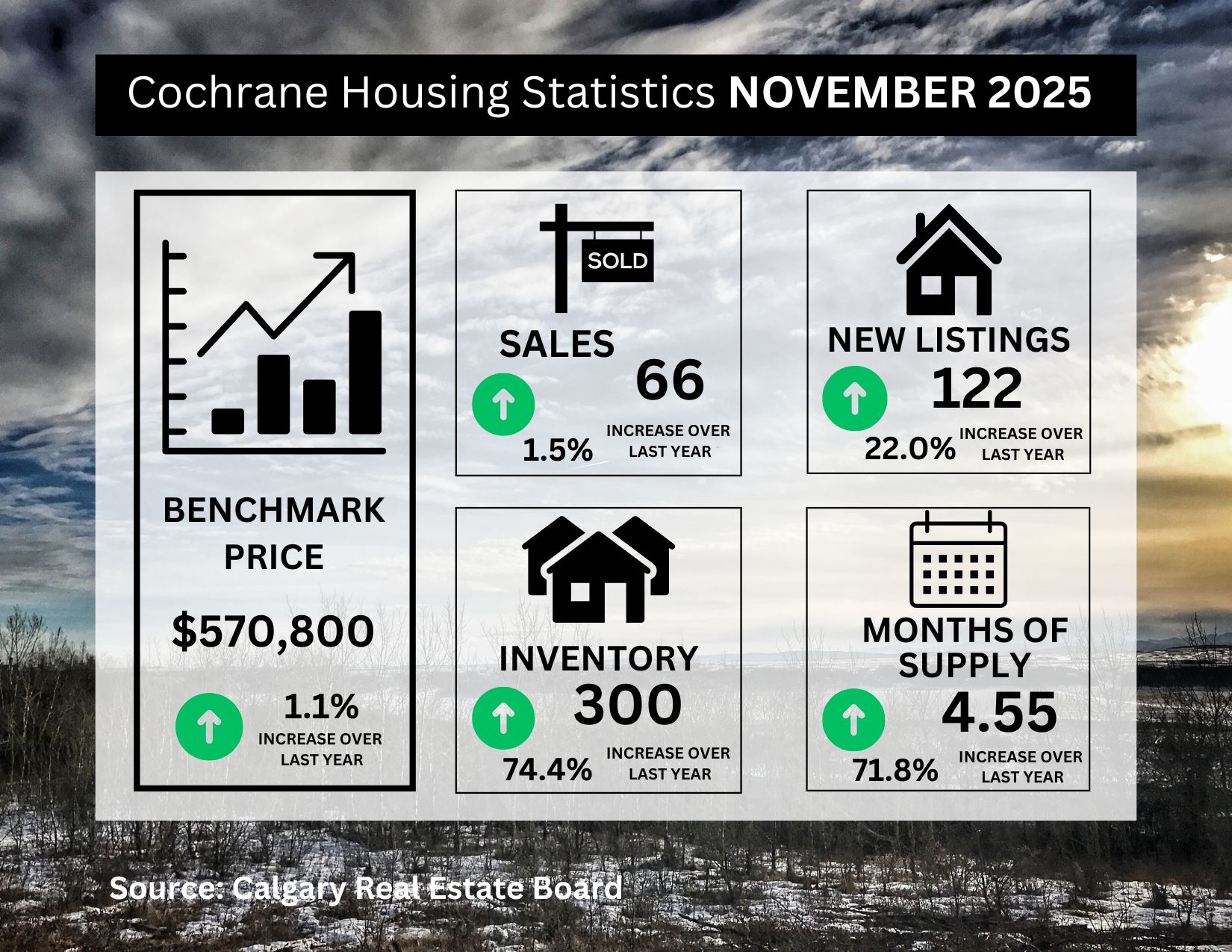 The final stats release of 2025 was posted by CREB®, saying, in line with typical seasonal trends, sales, new listings and inventory levels all slowed relative to last month. The 1,553 sales were met with 2,251 new listings, causing the sales-to-new-listings levels ratio to improve to 69 per cent. This also helped support some of the inventory adjustment. However, with 5,581 units in inventory, levels are still 28 per cent higher than last year and over 15 per cent higher than typical levels reported in November.